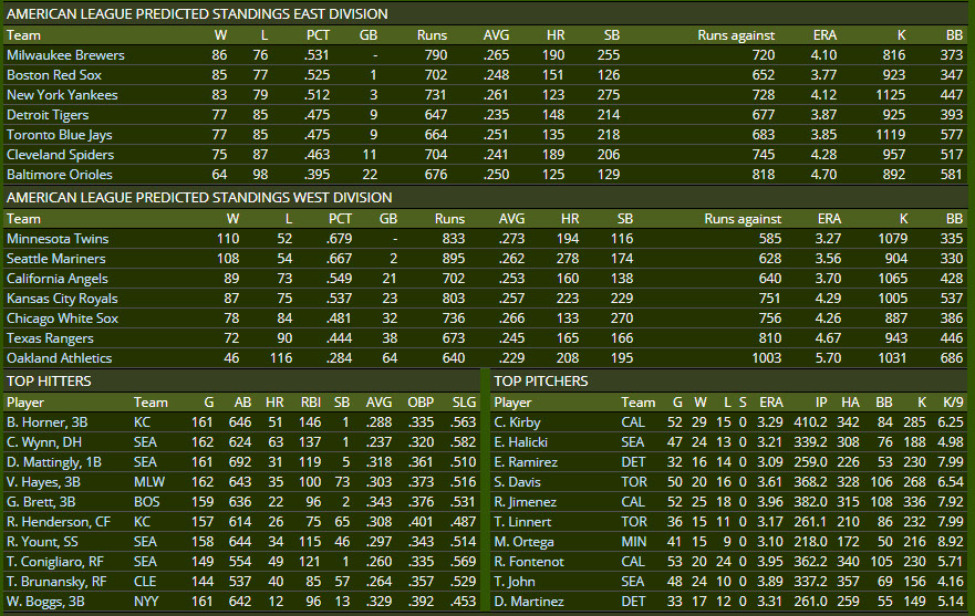 OPENING DAY 1982 AL PREDICTIONS