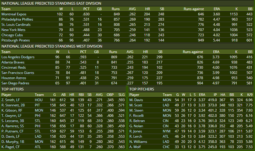 OPENING DAY 1982 NL PREDICTIONS