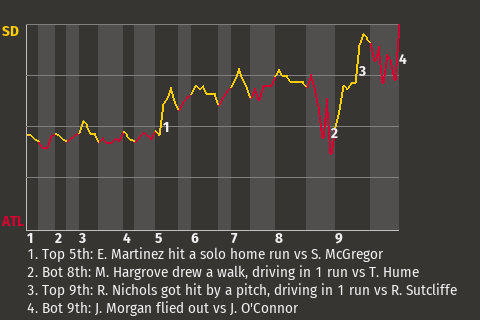 e - J. Peters pinch hit for T. Gwynn in the 7th