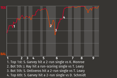 It could have been a different outcome for Texas, had it not been for Steve Garvey, the two-time Gold Glove Award winner . Garvey contributed a 2-run single in the top of the sixth inning to put Texas up, 8-5.