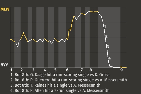 (5, 8th Inning off A. Messersmith, 2 on, 0 outs)