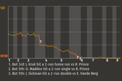 John Kruk, who is tied for 5th in the NL with a .333 batting average, contributed to the New York win with a 2-run home run in the bottom of the third. For the game, the center fielder had 2 hits in 4 at-bats with 1 home run, 1 single, 2 runs scored, and 2 runs batted in.